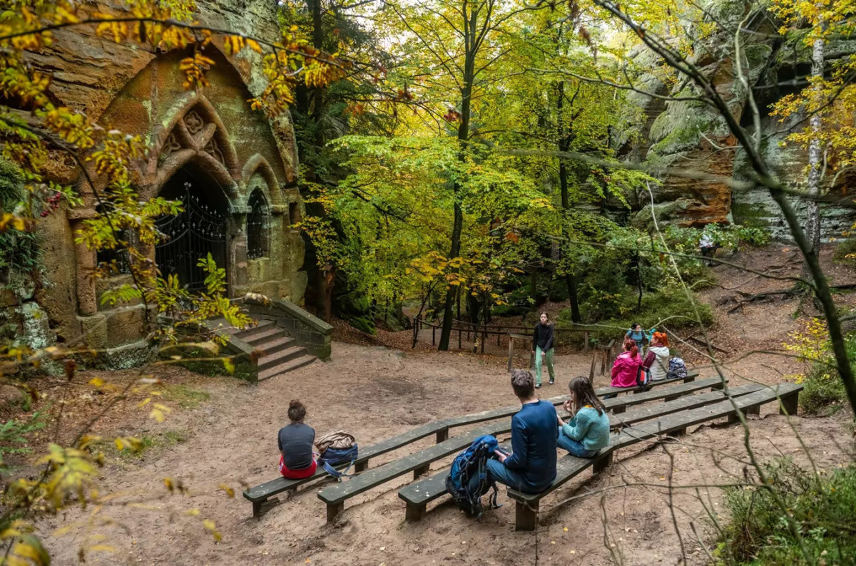 Mariina vyhlídka - strmý, ale odměňující výšlap s panoramatickými výhledy na skalní města, hrady a kopce Národního parku.