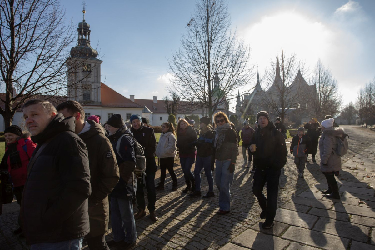 Kdo měl hlad, využil možnosti vyzvednout si guláš, svařák a další drobné občerstvení. V okolí stolů se rychle tvořila spokojeně pojídající malá komunita. Děti mezitím zkoušely workshopové aktivity – vyráběly vánoční ozdoby, skládaly výzvovou obálku nebo se na motokárách proháněly dopravním hřištěm v zahradě. „Tyjoo, takovou motokáru jsem ještě neviděl,” radoval se jeden z menších návštěvníků.
