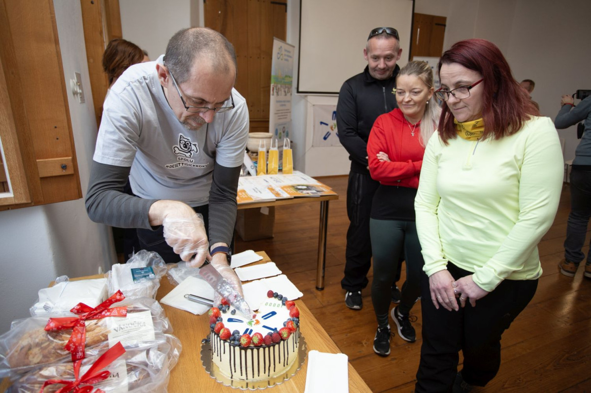 Dále se přešlo k vyhlašování jednotlivých kategorií. Ty začala vyhlašovat koordinátorka Výzvy Sylva Machová. „Moc si vážíme toho, že se Výzva neustále rozrůstá. V říjnu se počet účastníků zastavil těsně pod hranicí 25 tisíc, což už je opravdu krásné číslo. Slavíme dnes také významné jubileum, protože od první Výzvy uplynulo 5 let, což znamená že tato podzimní Výzva byla již desátá. Chtěli bychom proto pogratulovat nejen vám všem, kteří jste se letos zapojili ale zejména všem, co se zapojili už po desáté,“ prozradila koordinátorka akce a pozvala všechny účastníky, kteří se zúčastnili každý jeden rok, aby přišli na pódium. Jako poděkování pro ně tým připravil tematicky dort ozdobený logem Výzvy.