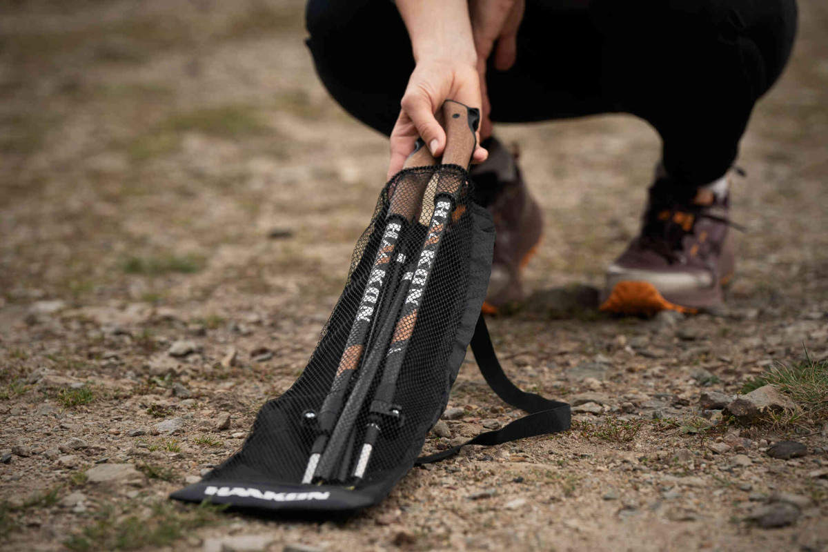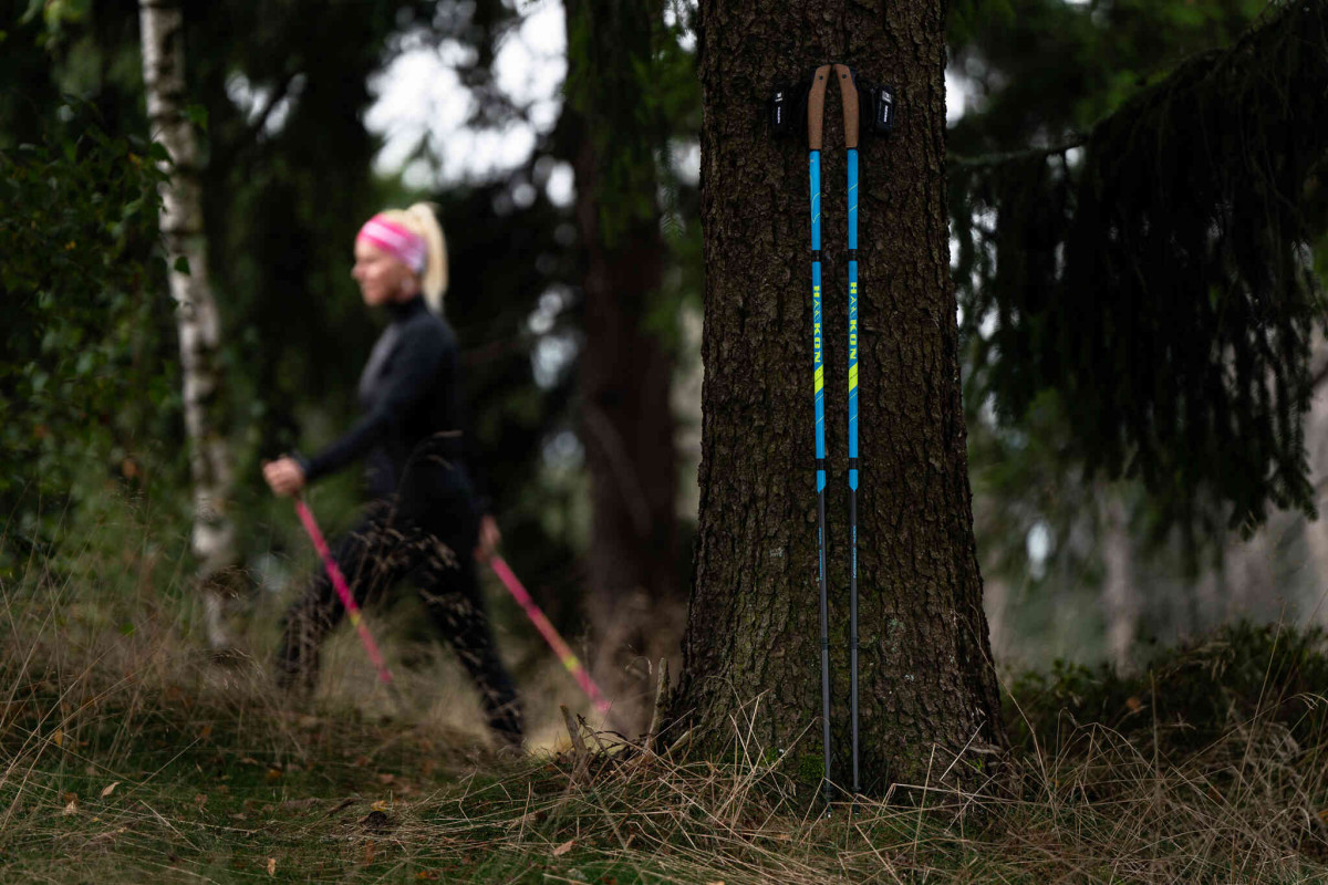 Trekové hole jsou naopak častěji teleskopické nebo skládací. Mají robustnější rukojeť a jednoduchý pásek přes zápěstí. Jsou navržené především jako opora při turistice v náročnějším terénu.