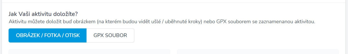- Vyberte si, zda svou aktivitu chcete doložit A) obrázkem/fotkou/otiskem/printscreenem obrazovky, nebo B) GPX souborem